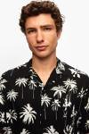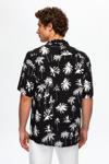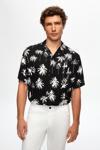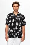 Ds Damat Relaxed Siyah Desenli Palmiye Desenli Kısa Kollu Yazlık Viskon Gömlek