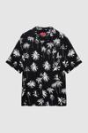 D's Damat Ds Damat Relaxed Siyah Desenli Palmiye Desenli Kısa Kollu Yazlık Viskon Gömlek