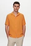 Ds Damat Relaxed Turuncu Gofre Kısa Kollu Kırışmaz Gömlek
