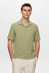 D's Damat Ds Damat Relaxed Yeşil Gofre Kısa Kollu Kırışmaz Gömlek