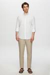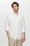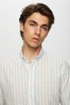 Ds Damat Slim Fit Açık Mavi Çizgili Düğmeli Yaka %100 Pamuk Flamlı Yazlık Keten Görünümlü Gömlek