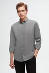 D's Damat Ds Damat Slim Fit Antrasit Oxford Düğmeli Yaka Kolay Ütülenebilir Nakış Detaylı Pamuklu Gömlek