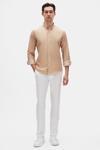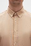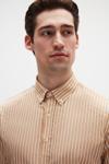 Düğmeli yaka, pamuk karışımlı, çizgili casual giyim için ideal gömlek. Chino ya da jean pantolonlar ile ceket içinde kullanılarak kombinlenebilir.