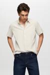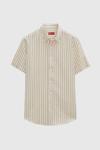 D's Damat Ds Damat Slim Fit Bej Gofre Kısa Kollu Gömlek