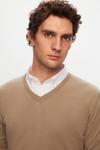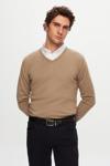 Ds Damat Slim Fit Bej Pamuk Karışımlı 2'Li V Yaka Triko Ve Gömlek