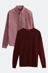 D's Damat Ds Damat Slim Fit Bordo Pamuk Karışımlı 2'Li Bisiklet Yaka Triko Ve Gömlek