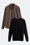 Ds Damat Slim Fit Camel Pamuk Karışımlı 2'Li Bisiklet Yaka Triko Ve Gömlek