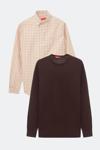 D's Damat Ds Damat Slim Fit Camel Pamuk Karışımlı 2'Li Bisiklet Yaka Triko Ve Gömlek