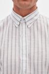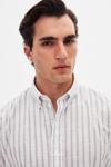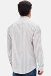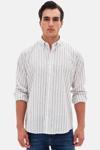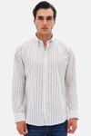 Ds Damat Slim Fit Gri Çizgili %100 Pamuk Yazlık Keten Gömlek