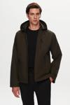 Erkekler için tasarlanmış olan bu mont, haki rengiyle dikkat çeker.