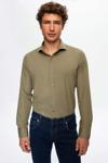 Ds Damat Slim Fit Haki Klasik Kravatlık Uzun Kol Kolay Ütülenebilir Gömlek