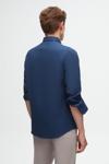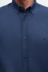 D's Damat Ds Damat Slim Fit İndigo Oxford Düğmeli Yaka Kolay Ütülenebilir Nakış Detaylı Pamuklu Gömlek