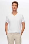 D's Damat Slim Fit Kahve/Bej/Beyaz 3'Lü Set V Yaka T-Shirt