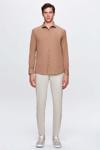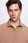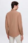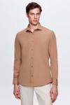 D's Damat Slim Fit Kahverengi Klasik Kravatlık Uzun Kol Kolay Ütülenebilir Gömlek