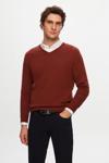 Ds Damat Slim Fit Kiremit Pamuk Karışımlı 2'Li V Yaka Triko Ve Gömlek
