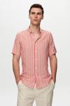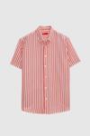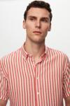 D's Damat Ds Damat Slim Fit Kırmızı Gofre Çizgili Kısa Kollu Yazlık Gömlek