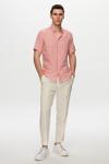 Ds Damat Slim Fit Kırmızı Gofre Çizgili Kısa Kollu Yazlık Gömlek