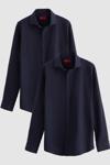 D's Damat Ds Damat Slim Fit Lacivert İtalyan Yaka Kolay Ütülenebilir 2'Li Gömlek