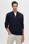 D's Damat Slim Fit Lacivert Yarım Fermuarlı Triko Kazak