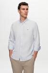D's Damat Ds Damat Slim Fit Mavi Oxford Düğmeli Yaka Kolay Ütülenebilir Nakış Detaylı Pamuklu Gömlek
