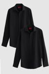 D's Damat Ds Damat Slim Fit Siyah İtalyan Yaka Kolay Ütülenebilir 2'Li Gömlek