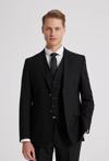 D's Damat Slim Fit Siyah Mono Yaka Tek Yırtmaçlı Astarlı Takim Elbise Yelekli
