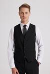 Slim Fit Siyah Mono Yaka Tek Yırtmaçlı Astarlı Takim Elbise Yelekli
