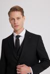 Erkek Siyah Yünlü Platinium Düz Desen Slim Fit Mono Yaka Takım Elbise - Image 1