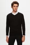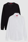 D's Damat Slim Fit Siyah Pamuk Karışımlı 2'Li V Yaka Triko Ve Gömlek