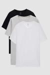 D's Damat Slim Fit Siyah/Gri/Beyaz 3'Lü Set V Yaka T-Shirt