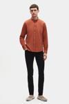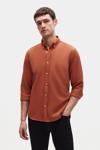 D's Damat Ds Damat Slim Fit Tarçın Oxford Düğmeli Yaka Kolay Ütülenebilir Nakış Detaylı Pamuklu Gömlek