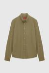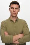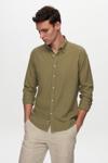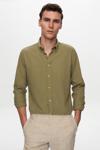 Ds Damat Slim Fit Yeşil Düğmeli Yaka %100 Pamuk Yazlık Flamlı Keten Görünümlü Gömlek