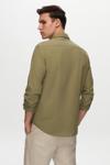 Flamlı keten görünümlü dokusu, gömleğe özgün bir hava katar.