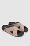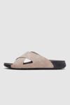 D's Damat markasının şıklığı ve konforu bir araya getiren bu terlik, bej rengiyle dikkat çeker.