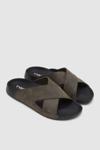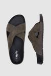 D's Damat markasının şıklığı ve konforu bir araya getiren haki çapraz bant terliği, erkekler için tasarlanmıştır.