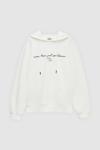 D's Damat Twn Relaxed Fit Ekru Nakışlı 3 İplik Kapüşonlu Sweatshirt