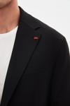 Erkek Siyah Yünlü Platinium Düz Desen Slim Fit Mono Yaka Takım Elbise - Image 1