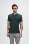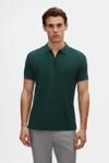 D's Damat Twn Slim Fit Haki Pike Dokulu Yarım Fermuarlı Polo Yaka Yazlık T-Shirt