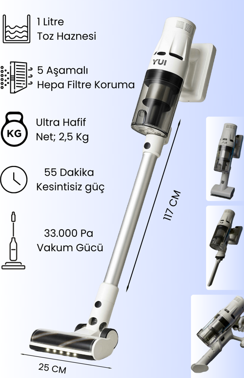 Ds17 Pro Max Şarjlı Dikey Süpürge Dc Motor Hepa Filtre 3 Kademeli Hız Ayarı;