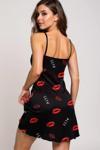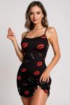 Byb Moda Tasarım Dudak Desenli Siyah Askılı Gecelik
