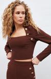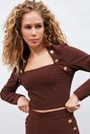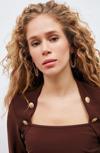 Düz yaka, uzun kol, yan fermuarlı kapama, gold düğme detaylı bluz.