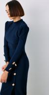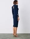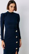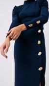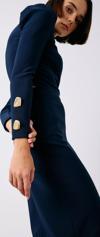 Dik yaka, arka yaka düğmeli kapama, vatkalı, gold düğme detaylı crop bluz.