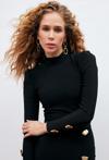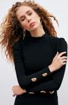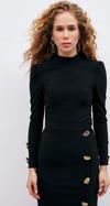Dik yaka, arka yaka düğmeli kapama, vatkalı, gold düğme detaylı crop bluz.