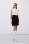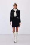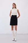 Düğme Detaylı Mini Tüvit Etek - Siyah