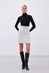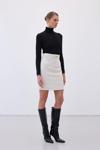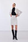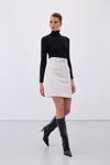 Düğme Detaylı Mini Tüvit Etek - Taş