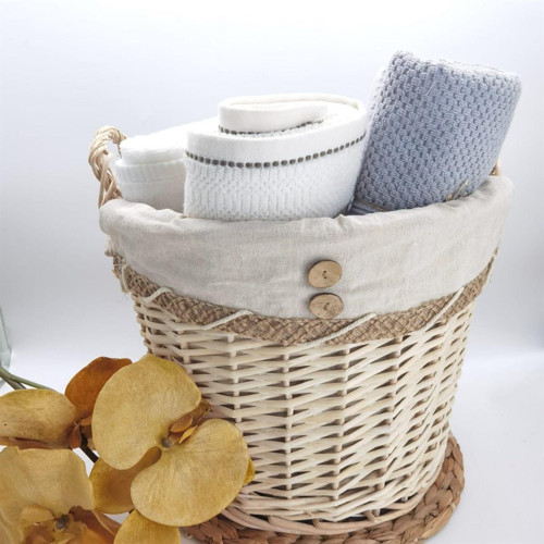 Düğme Detaylı Natural Yuvarlak Kulplu Hasır Sepet Orta Boy