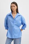 Düğme Detaylı Pamuklu Gömlek Mavi
