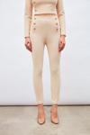 Yüksek bel, yan fermuarlı, düz paça, gold süs düğme detaylı pantolon.