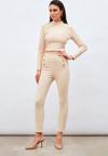 Günlük Moda Kadın Beli Lastikli Geniş Paça Relaxed Ekru Triko Altı - Image 1