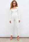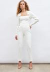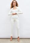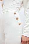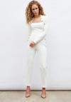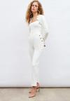 Yüksek bel, yan fermuarlı, düz paça, gold düğme detaylı pantolon.